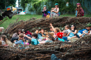 Tucked into the trees by the ruined mansion house there’s participatory workshops for all ages, street theatre, art installations, storytelling, open mic, live music (with a punk / protest / experimental vibe), and a fantastical night-time dance space.