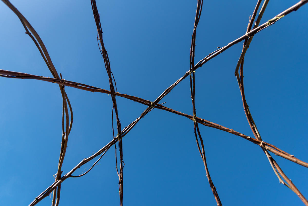 The design was inspired by a lotus flower and the steel and hazel frame took a couple of months to fabricate. The piece couldn’t have been finished without the expert sewing skills of